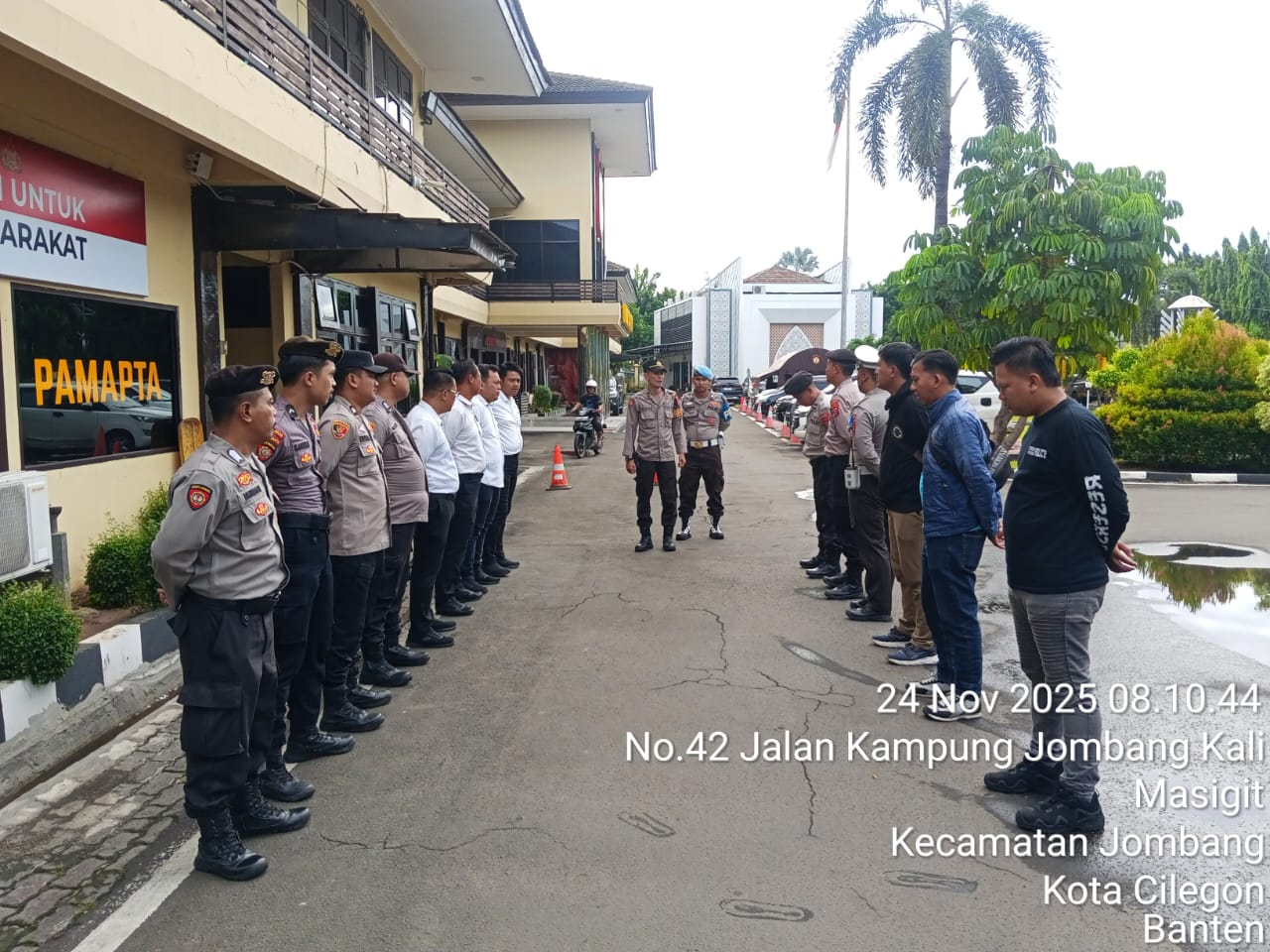 Kapolres Cilegon Polda Banten AKBP  Dr.Martua Raja Taripar Laut Silitonga melalui Kasatreskrim Polres Cilegon AKP Yoga Tama mengatakan, “kegiatan personel satreskrim polres cilegon melakukan piket di penjagaan pintu masuk Mako Polres Cilegon mengantisipasi adanya kejahatan yang menggangu kenyamanan dan keamanan mako Polres Cilegon dalam melakukan pelayanan kepada masyarakat kota Cilegon ".