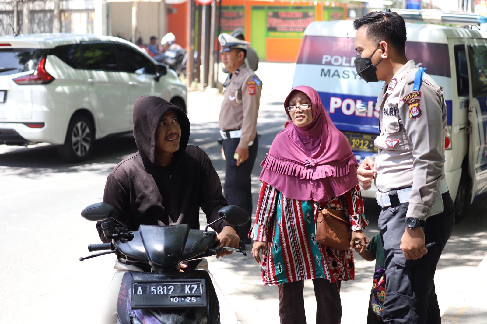 Selain itu, petugas juga melakukan teguran dan penindakan terhadap pengendara yang terbukti melanggar aturan. Penindakan dilakukan secara terukur dan humanis, dengan tujuan meningkatkan kesadaran masyarakat agar lebih berhati-hati dan patuh demi keselamatan diri sendiri maupun pengguna jalan lainnya.