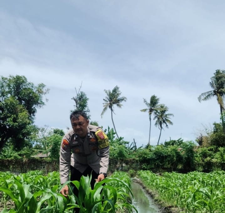 Bhabinkamtibmas Aiptu Daryo.E melaksanakan pendampingan pengecekan dan monitoring tanaman jagung di Linkungan Daliran, Kelurahan Kebondalem, Kecamatan Purwakarta, Kota Cilegon
