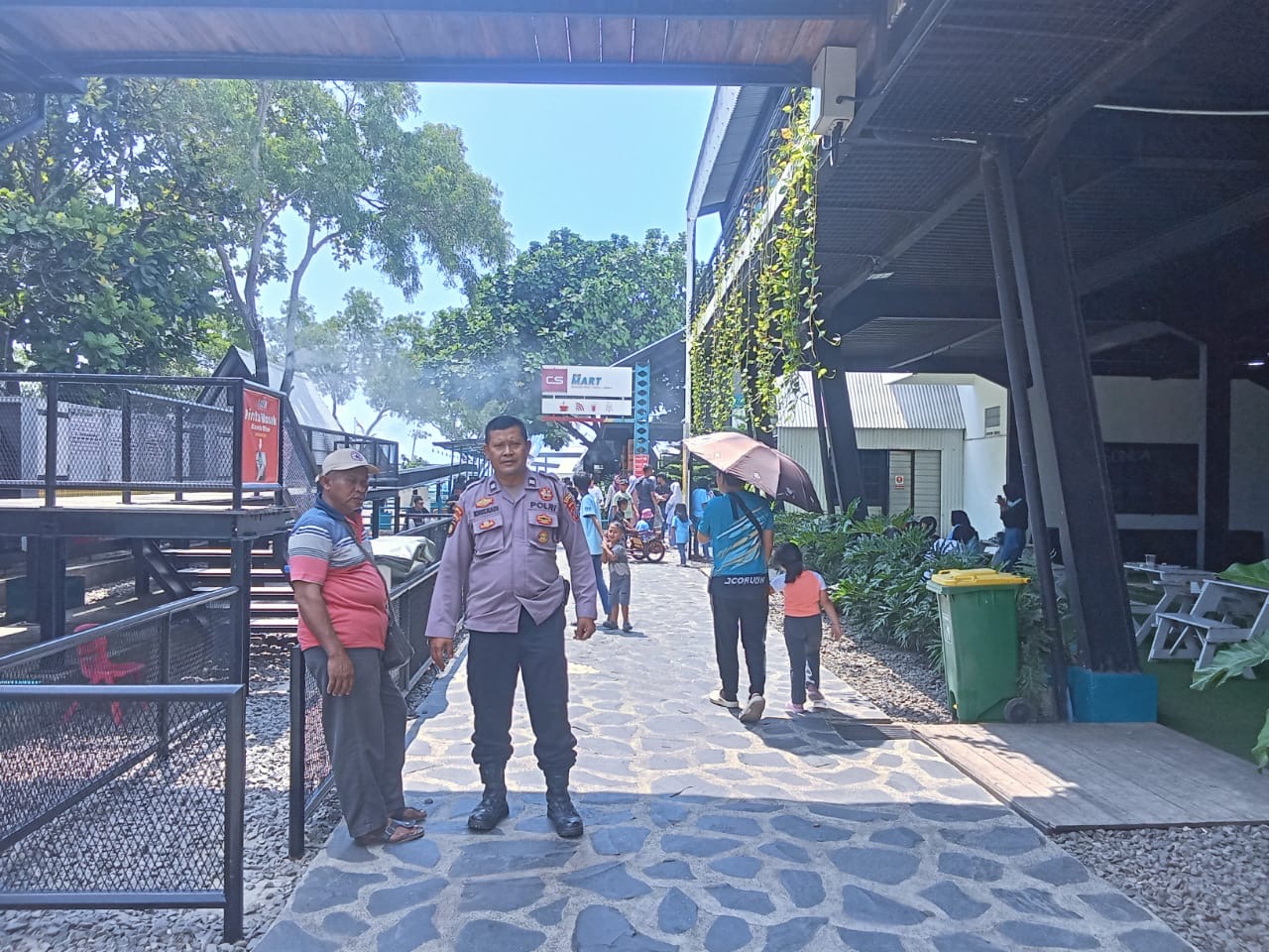 Personel Satpamobvit Polres Cilegon melaksanakan patroli wisata serta memberikan himbauan kepada para pengunjung, guna mewujudkan harkamtibmas di daerah hukum Polres Cilegon. Dengan pengawasan yang dilakukan oleh personel Satpamobvit Polres Cilegon, situasi di sekitar pantai ini tetap aman dari berbagai potensi ancaman.