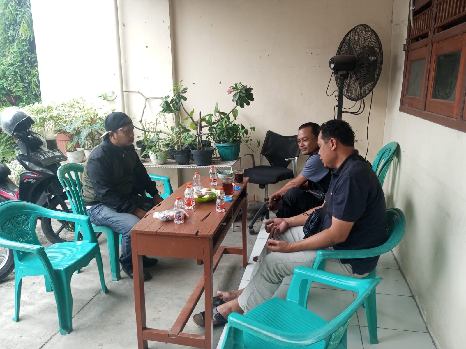 Personil sat intelkam melakukan koordinasi dengan tokoh masyarakat kelurahan bagendung kec. Cilegon kota cilegon.