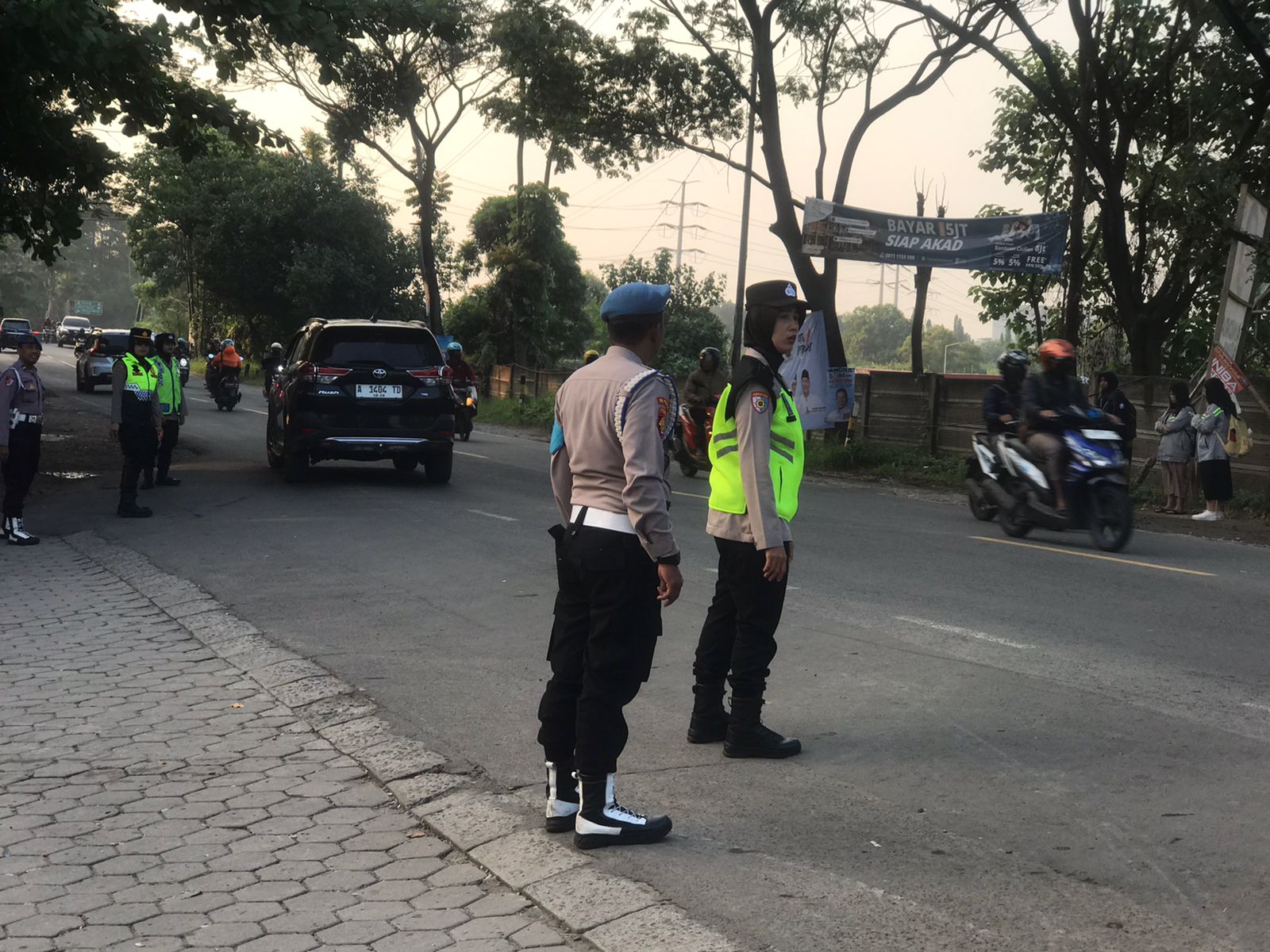 polwan polres cilegon laksanakan pengaturan arus lalin