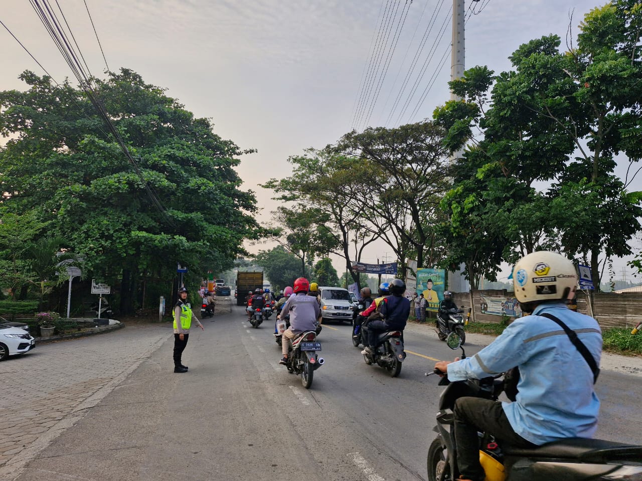 cegah kemacetan anggota polres cilegon lakukan pengaturan pagi hari