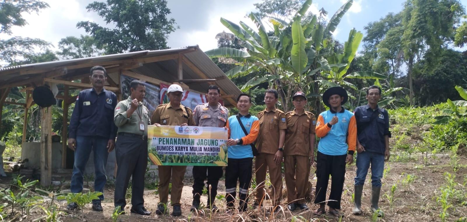 Polsek Anyar Melakukan Monitoring dan Mengikuti Kegiatan Penanaman Jagung oleh BUMDes Karya Mulya Mandiri