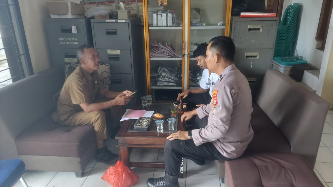 Kapolres Cilegon Polda Banten AKBP Dr. Martua Raja Taripar Laut Silitonga melalui Kapolsek Mancak  IPTU KHAIRUL Dan  Beserta Anggota Bhabinkamtibmas AIPDA EKO GUNAWAN SUPRIYADI. Melaksanakan giat sambang dan silatutahmi dengan staf desa sigedong  dalam Rangka pelaksanaan giat program *Polres Cilegon Tranding* dan *Quick Wins Presisi* Di  Polsek Mancak Sekaligus menghadirkan Polisi di tengah-tengah masyarakat.