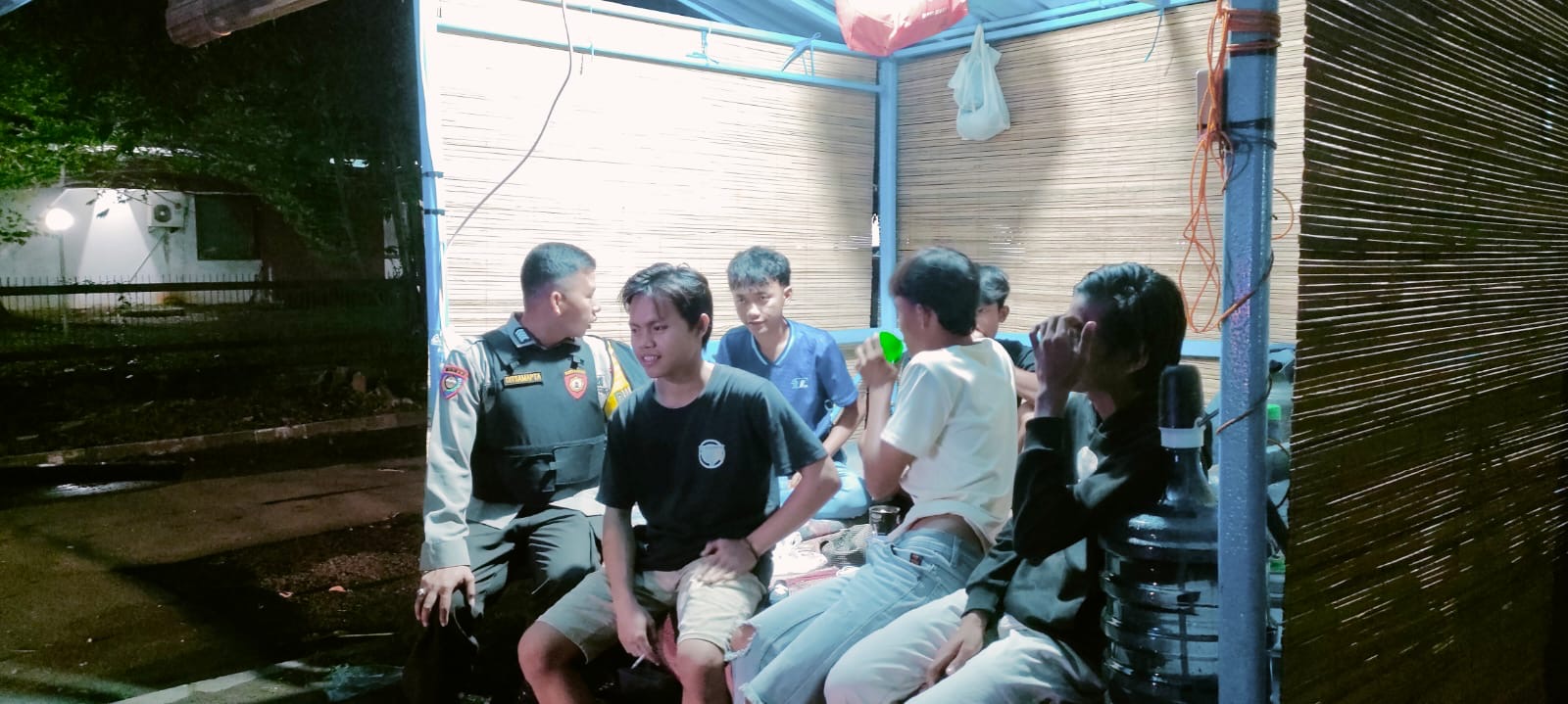 Bhabinkamtibmas Kotabumi Bripka Agustoni Patroli Dialogis, Menyapa Pemuda di Pos Ronda Jl. Kotasari