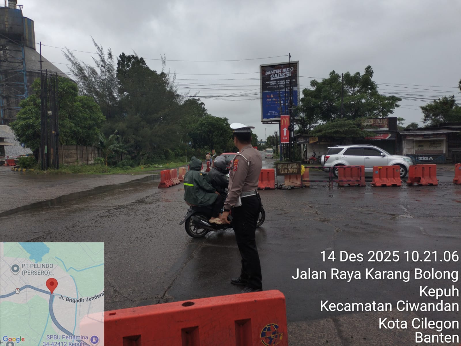 *Cilegon* - Personil Unit Lantas Polsek Ciwandan Polres Cilegon Polda Banten melaksanakan kegiatan monitoring jalur wisata di depan Pos Lantas JLS Ciwandan, Minggu (14/12/2025).