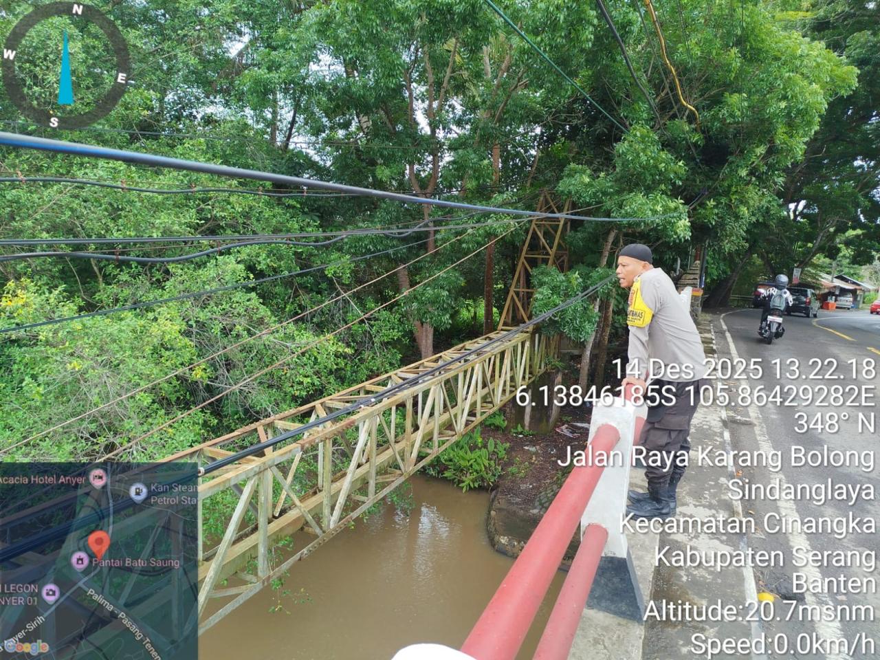 Piket Polsek Cinangka secara rutin melakukan pengecekan kondisi sungai dan berkoordinasi dengan pihak terkait untuk memantau perkembangan debit air. Pemantauan ini juga melibatkan partisipasi aktif dari masyarakat setempat.