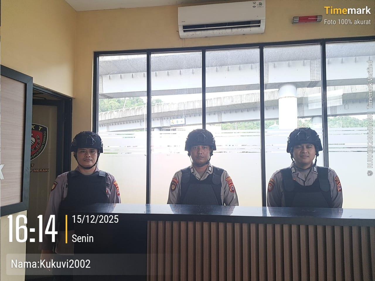 Cilegon - Personel piket jaga Polsek Kskp Merak Polres Cilgon Polda Banten melaksanakan siaga 1 Polsek pelaksanaan Sispam Mako oleh piket siaga dipimpin oleh Kspk Polsek Kskpy Merak Polres Cilegon Polda Banten, Senin (15/12/2025).
