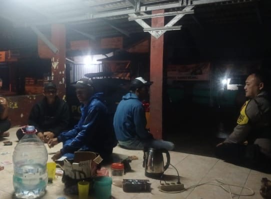 Bhabinkamtibmas Kebondalem Aiptu Daryo.E Menyapa Warga di Pos Ronda Daliran, Jaga Kamtibmas Malam Hari
