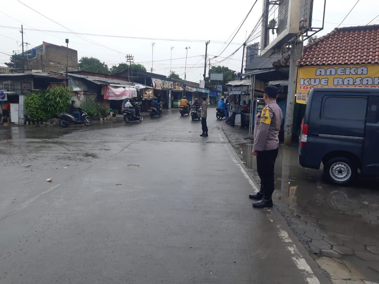 Strong Point Personil Samapta Polsek Cilegon urai kepadatan kendaraan.
