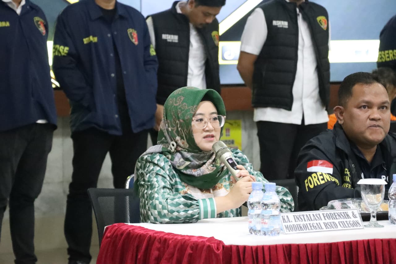 Press conference tersebut disampaikan oleh Ditreskrimum Polda Banten Kombes Pol Dian Setyawan didampingi Kapolres Cilegon AKBP Dr. Martua Raja Taripar Laut Silitonga, Plh. Kabid Humas Polda Banten AKBP Meryadi, Wakapolres Cilegon Kompol Arief Nazarudin, Kasubdit Jatanran Ditreskrimum Polda Banten Kompol Yeremia Iwo, Kasat Reskrim Polres Cilegon AKP Yoga Tama, Ka Instalasi Forensik Modikolegal RSUD Cilegon Dr. Baeti Adhayati SP FM, Puslabfor Polri Kompol Irfan Rofik.