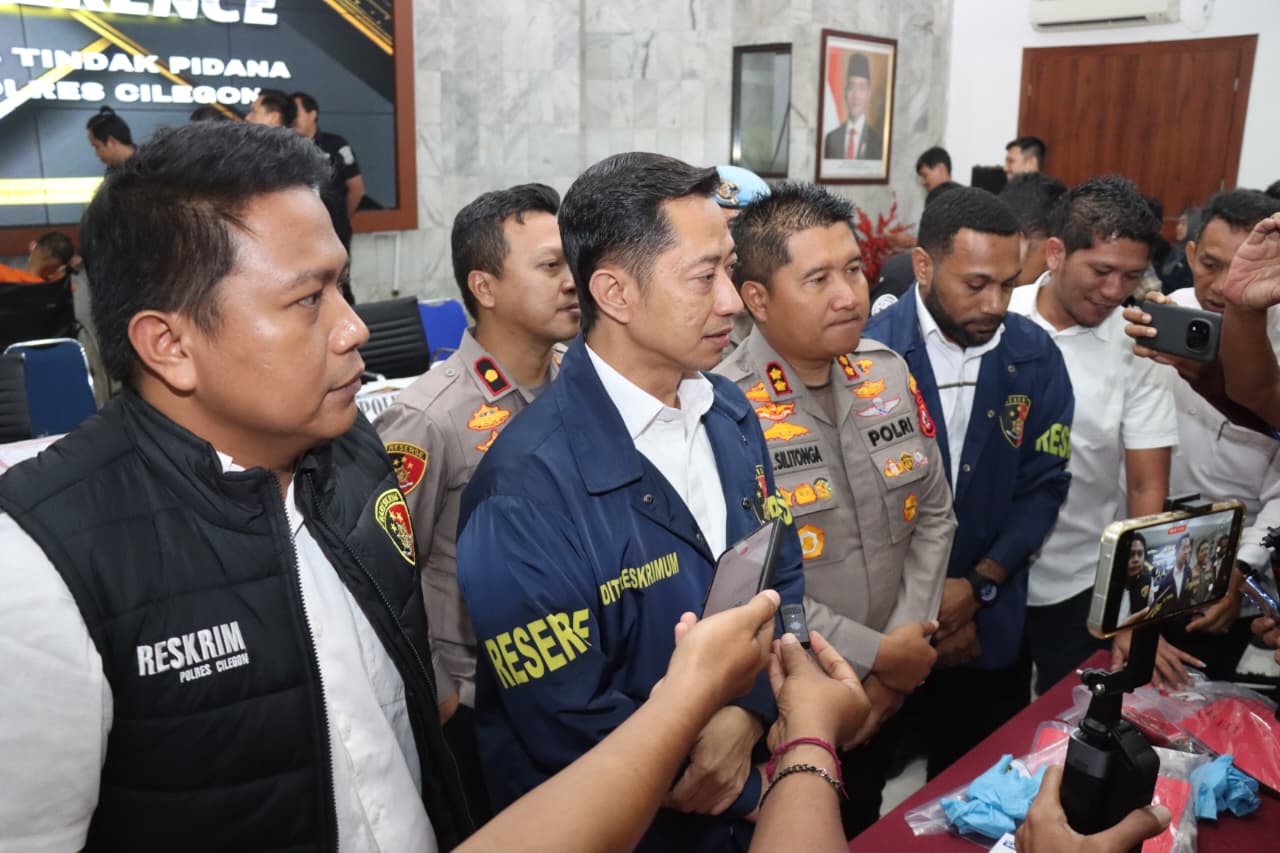 Press conference tersebut disampaikan oleh Ditreskrimum Polda Banten Kombes Pol Dian Setyawan didampingi Kapolres Cilegon AKBP Dr. Martua Raja Taripar Laut Silitonga, Plh. Kabid Humas Polda Banten AKBP Meryadi, Wakapolres Cilegon Kompol Arief Nazarudin, Kasubdit Jatanran Ditreskrimum Polda Banten Kompol Yeremia Iwo, Kasat Reskrim Polres Cilegon AKP Yoga Tama, Ka Instalasi Forensik Modikolegal RSUD Cilegon Dr. Baeti Adhayati SP FM, Puslabfor Polri Kompol Irfan Rofik.