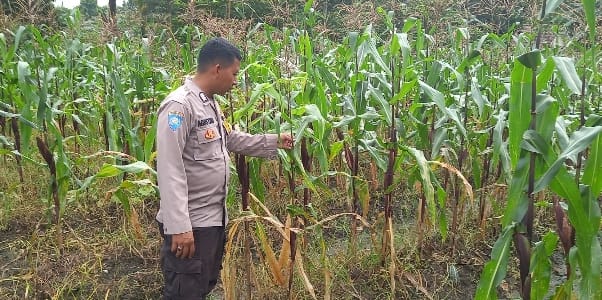 CEK TANAMAN JAGUNG WARGA, BHABINKAMTIBMAS BERPERAN AKTIF DALAM KETAHANAN PANGAN KELURAHAN