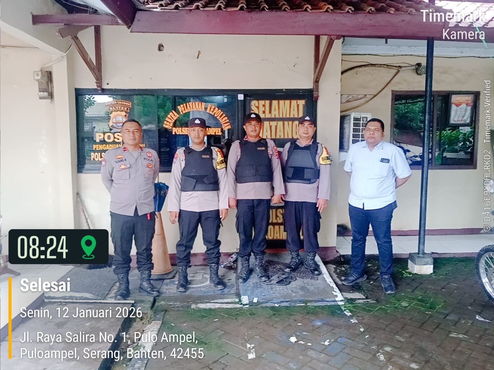 Pengamanan mapolsek ini dilakukan dalam rangka untuk mencegah terjadinya ancaman dan gangguan terhadap personel dan Mako Polsek  puloampelPolres Cilegon Polda Banten,senin(12/01/2026).