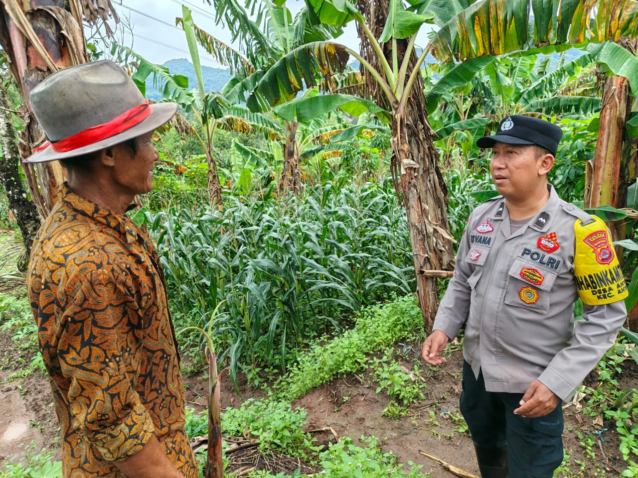 Dalam kegiatan monitoring ini, Bhabinkamtibmas meninjau langsung kondisi lahan jagung.