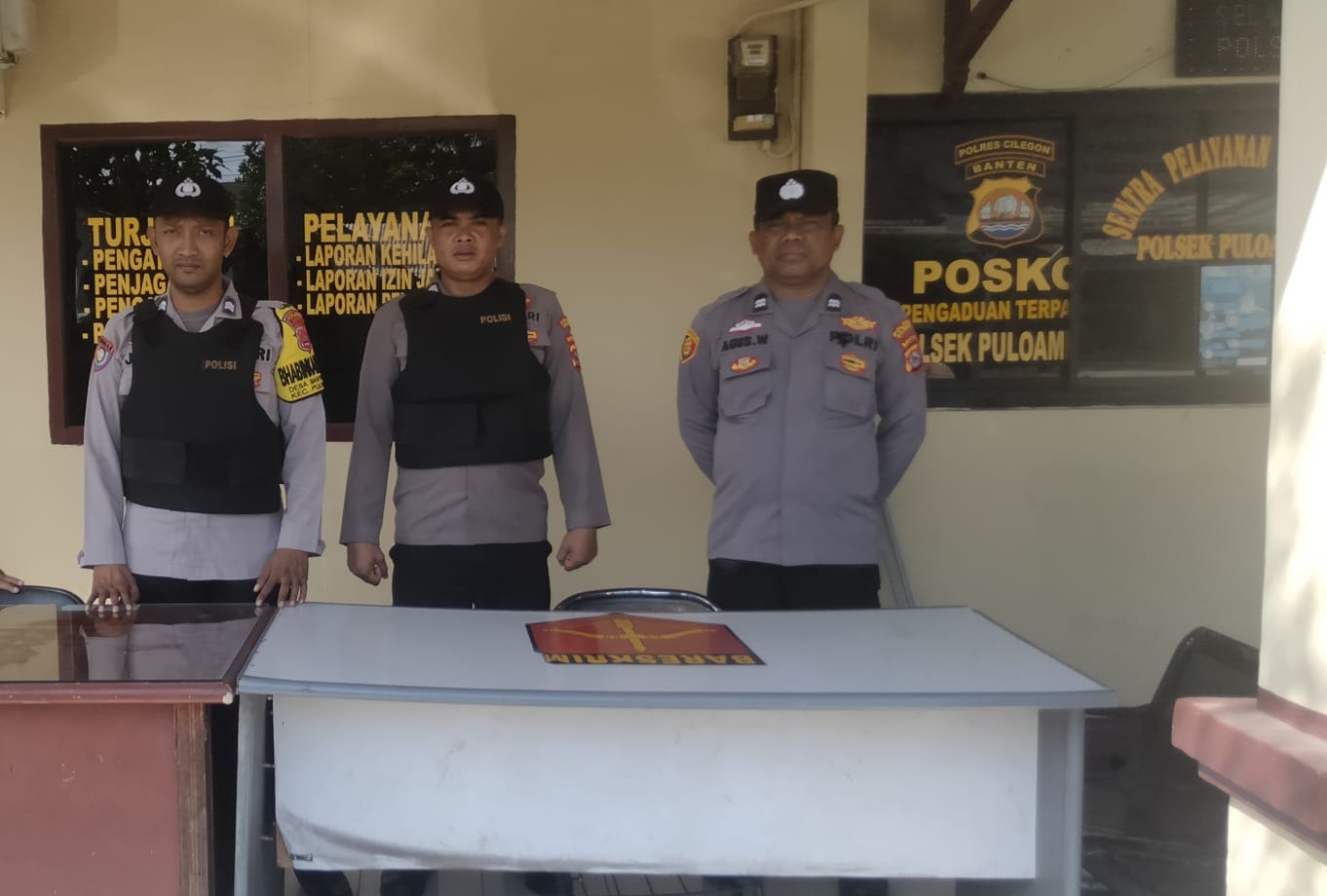 Kapolres Cilegon Polda Banten AKBP Martua Raja Taripar Laut Silitonga melalui  Kapolsek  Puloampel IPTU FURQON SAIBATIN SINGAJURU. membenarkan bahwa dalam rangka untuk mencegah berbagai ancaman dan gangguan pada Mako Polsek Puloampel, personel kita rutin melakukan penjagaan di pos penjagaan Mapolsek Puloampel Polres Cilegon, dimana  pengamanan ini dilaksanakan 1×24 jam,” ucapnya.