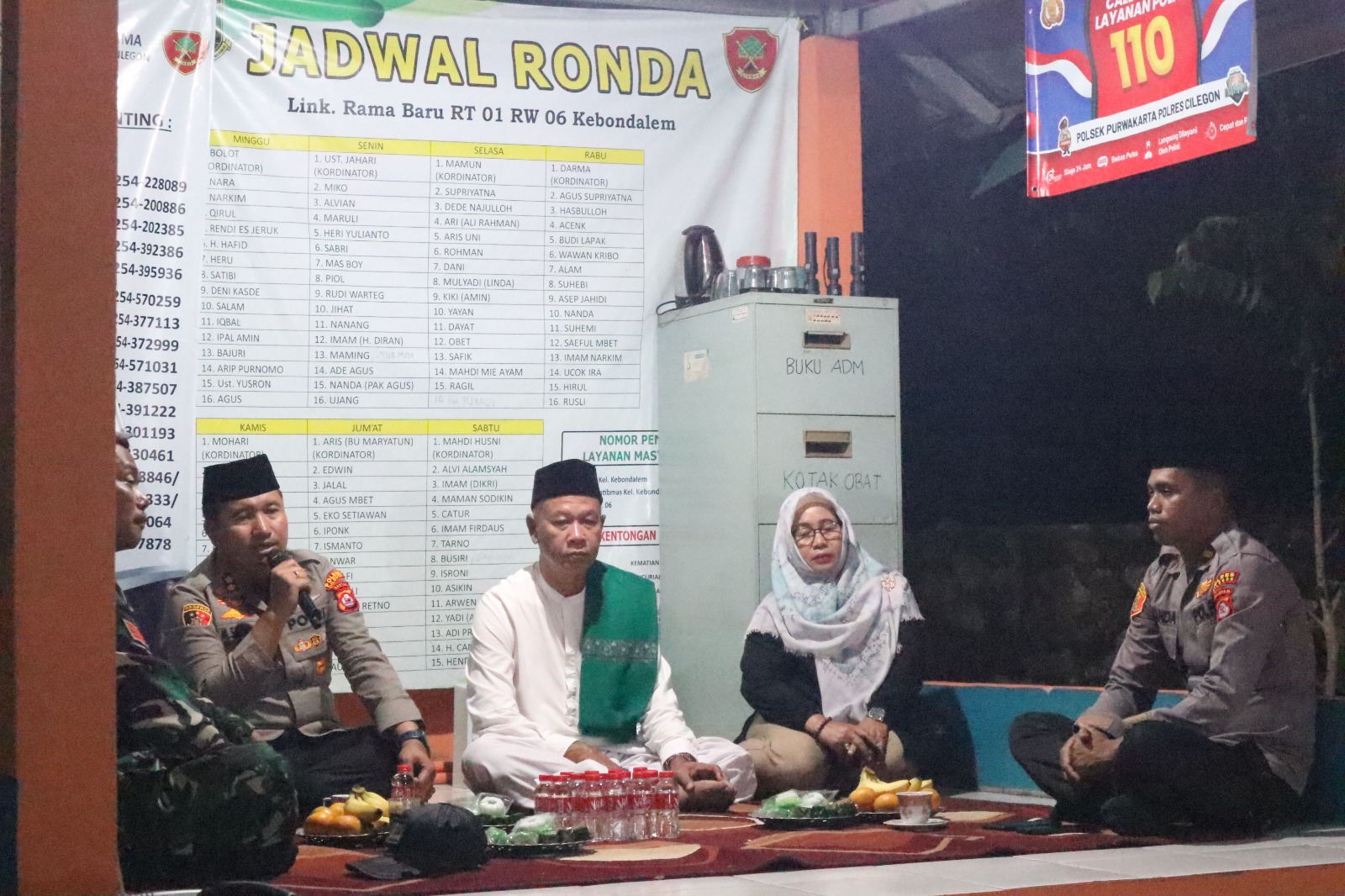 Dalam sambutannya, Lurah Kebondalem menyampaikan rasa terima kasih atas kunjungan tersebut. Ia menjelaskan bahwa hampir setiap RT di wilayahnya memiliki pos ronda yang dibangun secara swadaya, sebagai bukti kepedulian warga terhadap keamanan lingkungan.