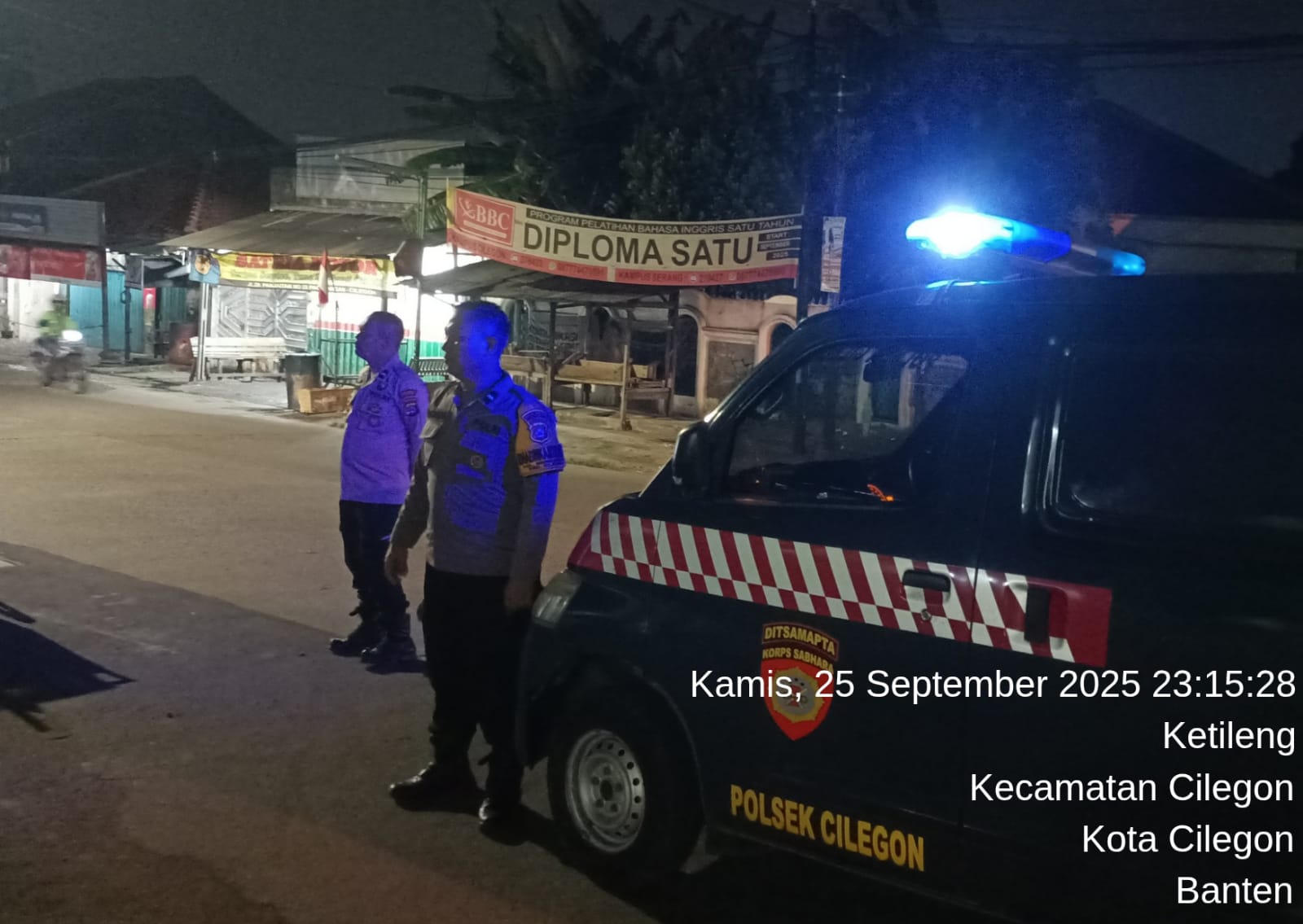 Anggota patroli samapta Polsek Cilegon laksanakan giat Blue light patrol antisipasi kejahatan malam hari jaga kondusifitas di wilayah