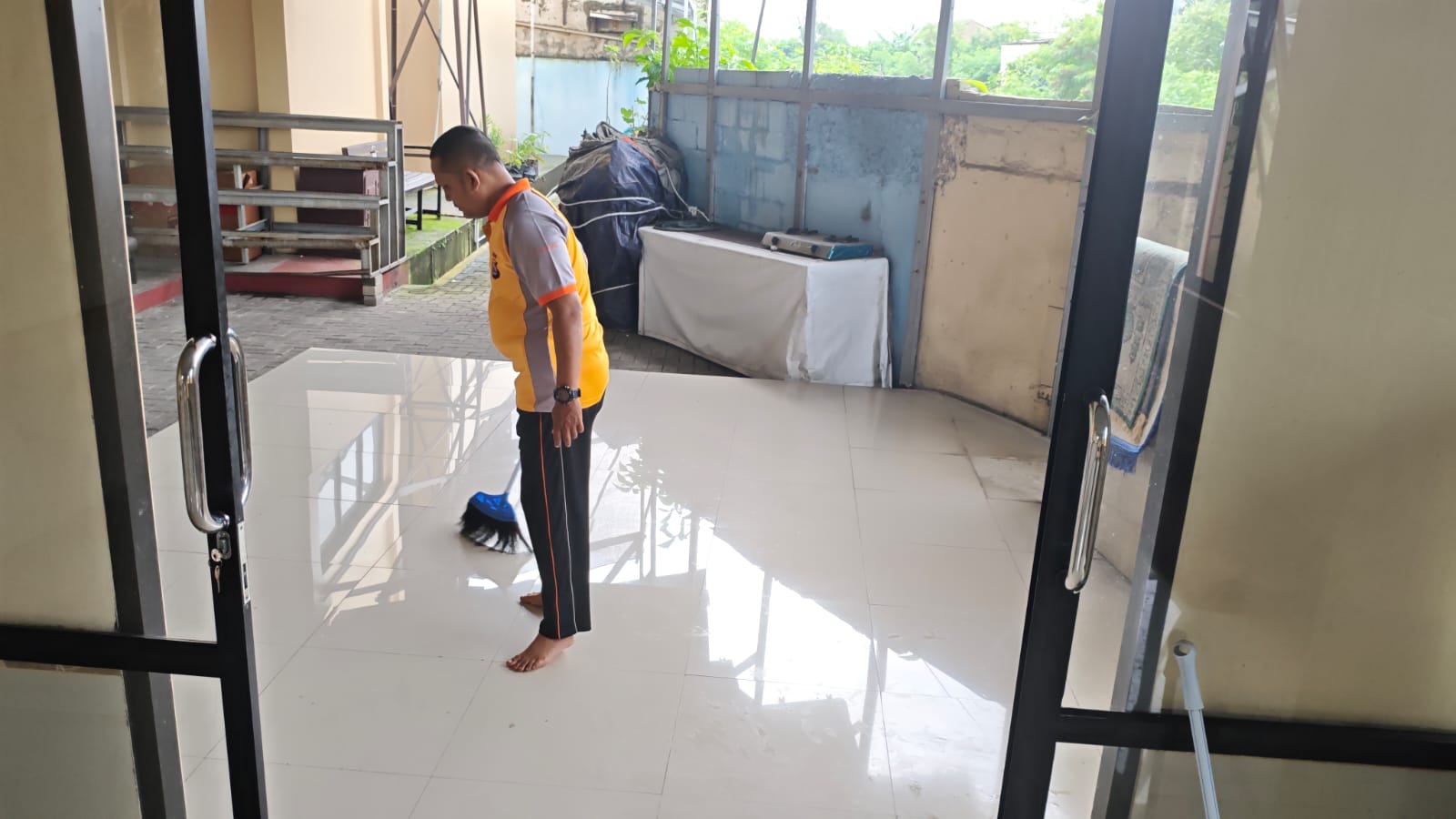 Personil Polsek Ciwandan Bersih-bersih Musholla