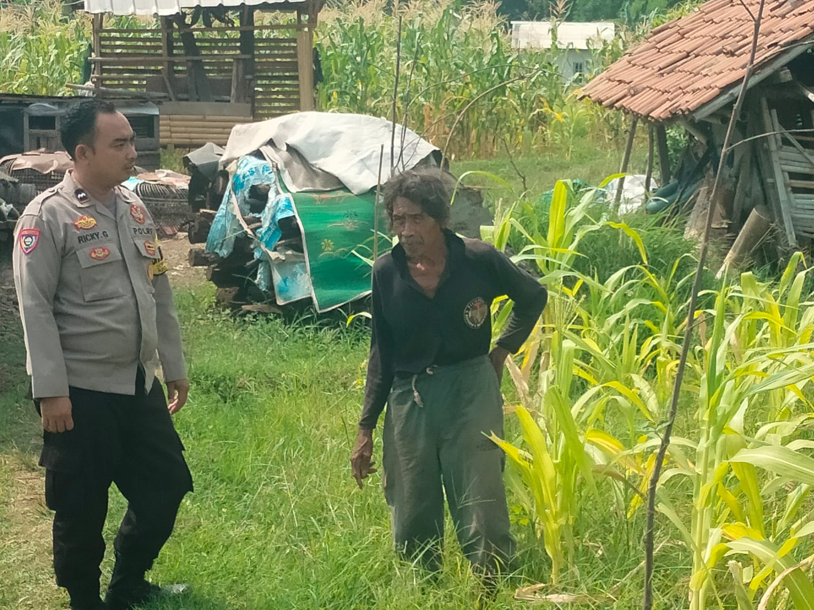 Pantau lahan jagung pok tani sinarjaya kecamatan.puloampel Desa banyuwangi oleh Bhabinkamtibmas Polsek Puloampel
