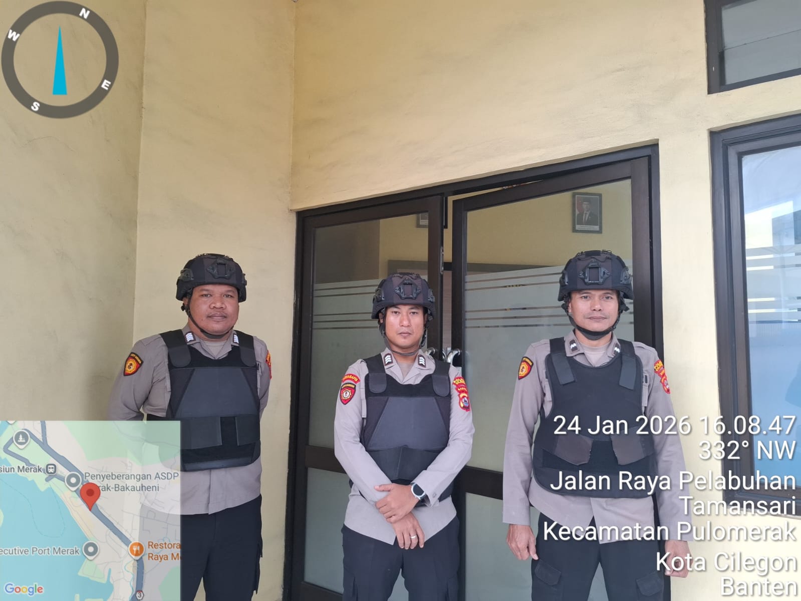 Cilegon - Personel piket jaga Polsek Kskp Merak Polres Cilgon Polda Banten melaksanakan siaga 1 Polsek pelaksanaan Sispam Mako oleh piket siaga dipimpin oleh Kspk Polsek Kskpy Merak Polres Cilegon Polda Banten, Sabtu (24/01/2026).