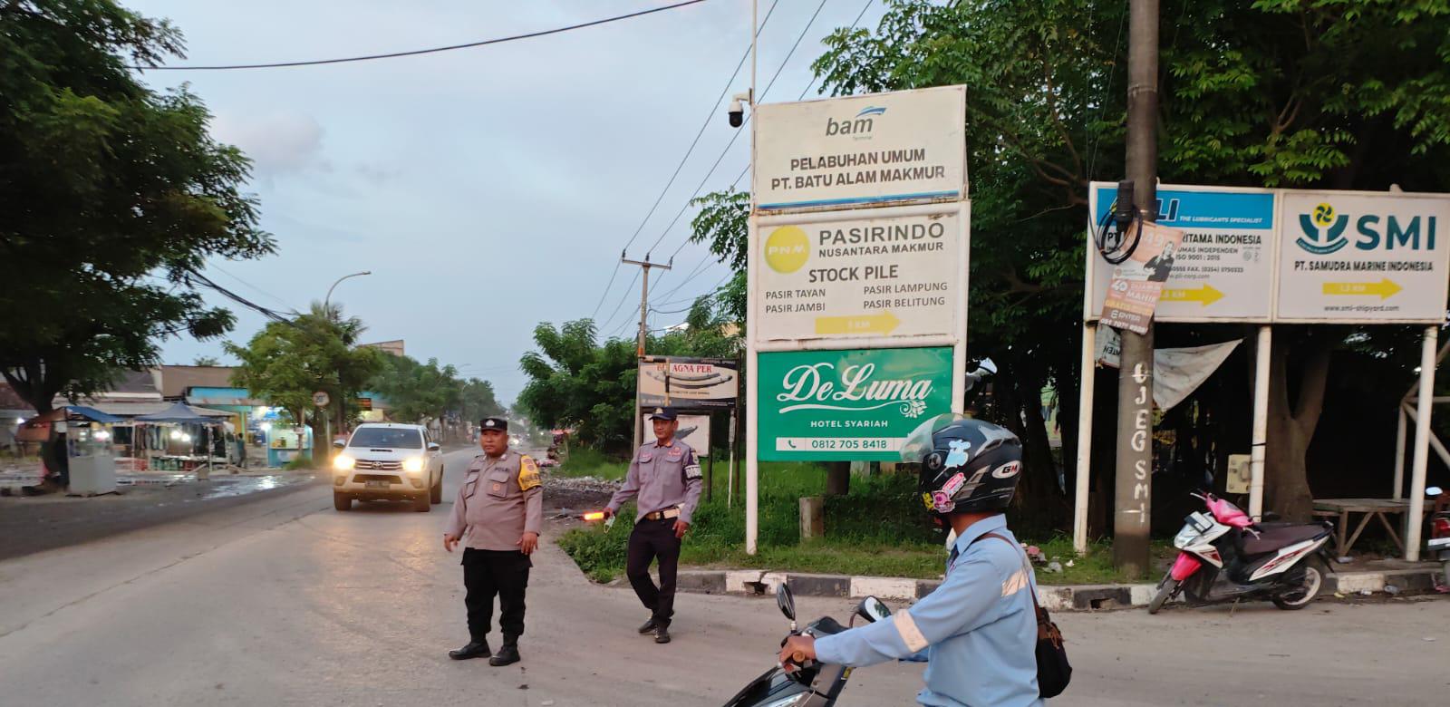 Ciptakan Situasi Lalu Lintas Aman, Ipda Gana Kanit Samapta dan Bripka Ghery Bhabinkamtibmas Laksanakan Gatur Lalin Pagi Hari Di Simpang Jalan Raya Wadas Bojonegara