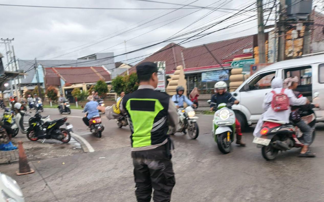 Personil Polsek Anyar Lakukan Pengaturan Lalu Lintas Lancarkan Jalur Agar Aman dan Lancar