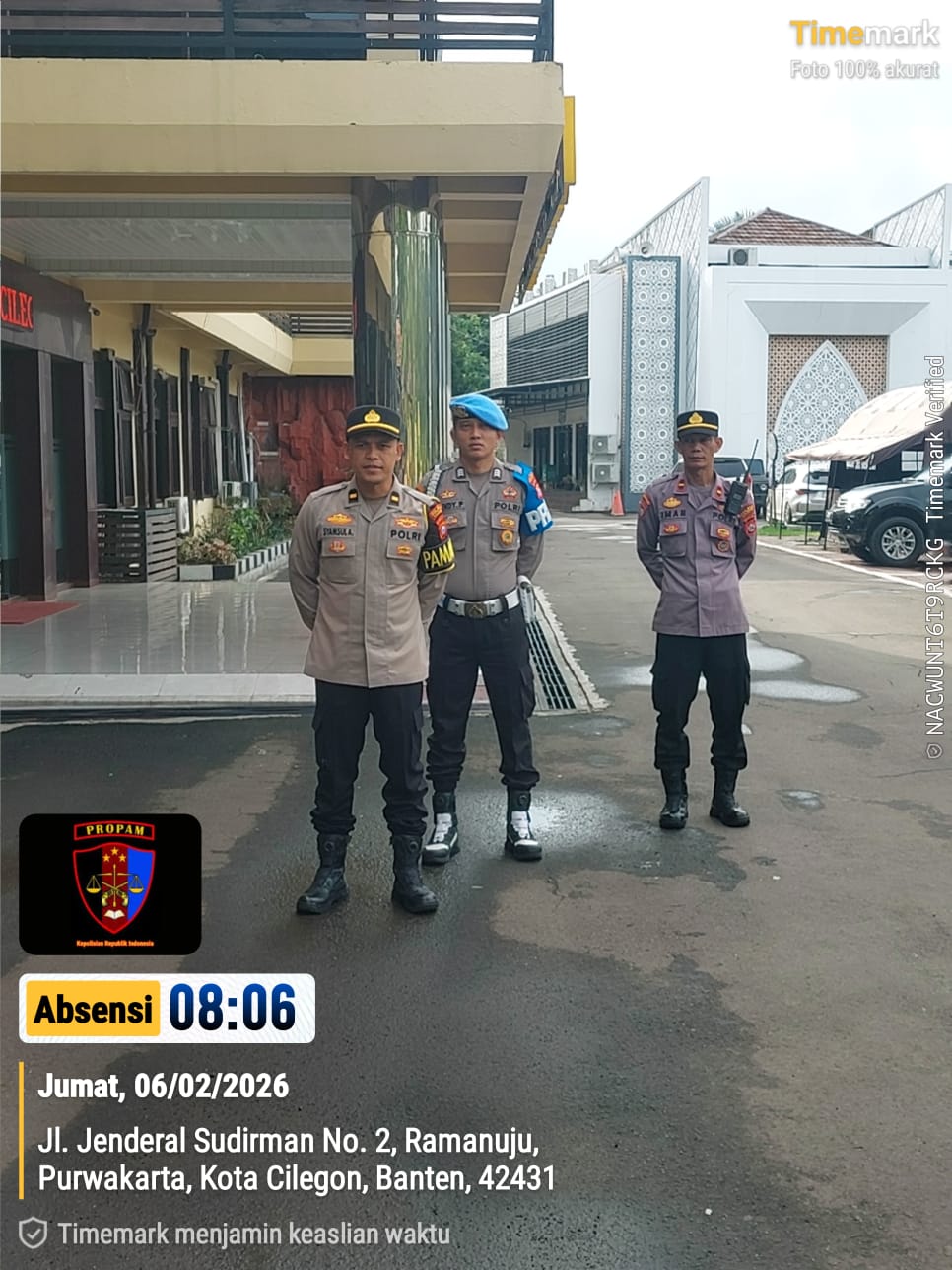 Cilegon, personel Satreskrim Polres Cilegon Polda Banten melaksanakan piket di penjagaan pintu masuk Polres Cilegon Polda Banten untuk memastikan mako Polres Cilegon dalam keadaan aman dan nyaman dalam melayani Masyarakat tanpa adanya gangguan kejahatan. Jumat (06/02/2026).