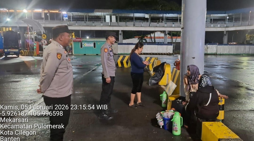 Cilegon - Personil Polsek Kskp Merak Polres Cilegon melaksanakan patroli di kawasan pelabuhan merak memberikan rasa aman dan damai, Jumat (06/02/2026)