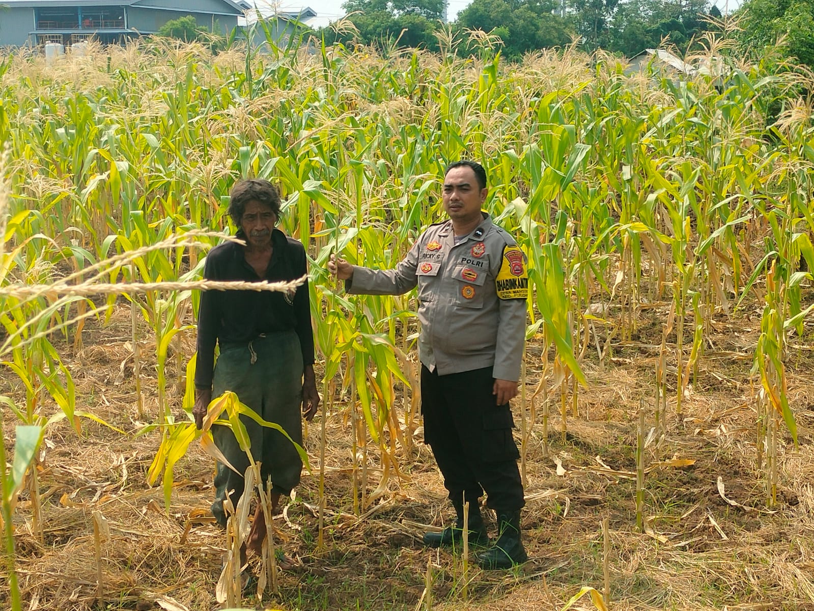 memantau lahan jagung pok tani sinarjaya kecamatan.puloampel Desa Banyuwangi oleh Bhabinkamtibmas Polsek Puloampel