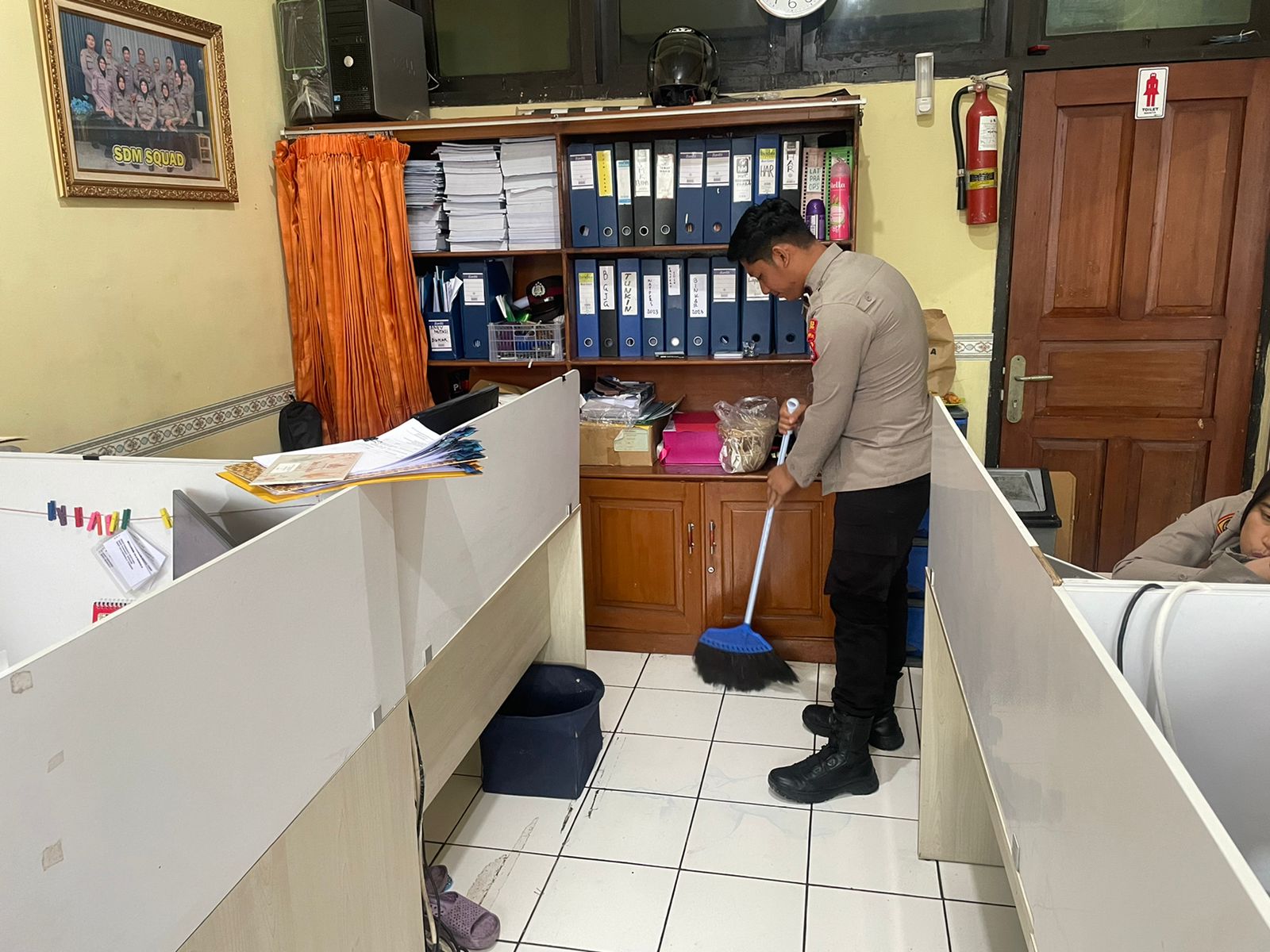 Anggota Bag SDM Polres Cilegon, Aktiif dalam melaksankan kegiatan membersihkan ruangan kerja secara rutin.
