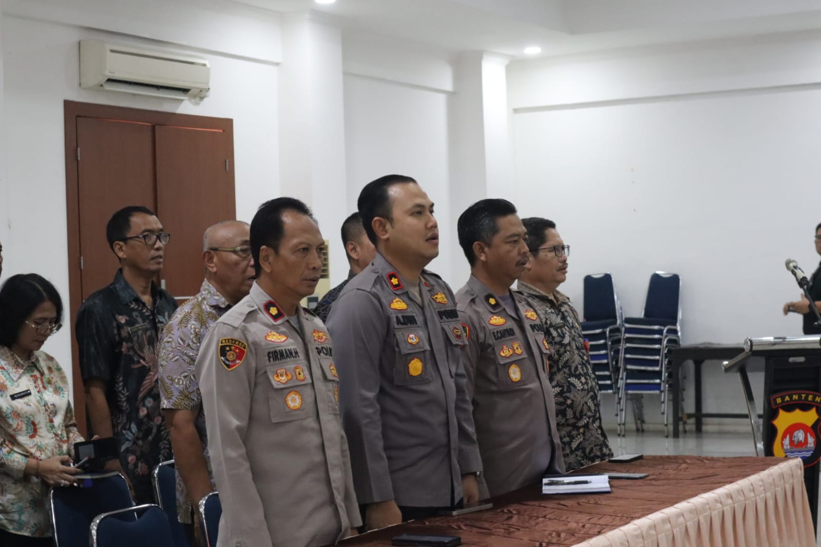 Rapat koordinasi dilaksanakan di bawah penanggung jawab Kapolres Cilegon AKBP Dr. Martua Raja Taripar Laut Silitonga, S.H., S.I.K., M.Si. Kegiatan turut dihadiri Wakapolres Cilegon KOMPOL M. Ridzky Salatun, S.I.K., Wakil Ketua I DPRD Kota Cilegon H. Sohidin, S.H., Wakil Ketua II DPRD Kota Cilegon H. Masduki, Asda II Kota Cilegon H. Dana Sujaksani, S.Sos., M.Si., Danramil Cilegon Mayor Inf Usman, Plt Kadis Ketahanan Pangan Kota Cilegon Novi Yogi, Sekjen MUI Kota Cilegon H. Sutisna Abas, Ketua MUI Kabupaten Serang H. Muhit, Ketua FKUB Kabupaten Serang KH. Komarudin, Head Operation ASDP Merak I Putu Widhiyatamaja, Jr Officer Sc PT Pertamina Tanjung Gerem Achtizen, para PJU Polres Cilegon, Kapolsek jajaran Polres Cilegon, perwakilan SKPD Kota Cilegon, pimpinan instansi terkait, serta pimpinan organisasi keagamaan.