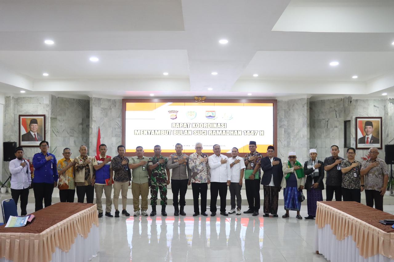 Rapat koordinasi dilaksanakan di bawah penanggung jawab Kapolres Cilegon AKBP Dr. Martua Raja Taripar Laut Silitonga, S.H., S.I.K., M.Si. Kegiatan turut dihadiri Wakapolres Cilegon KOMPOL M. Ridzky Salatun, S.I.K., Wakil Ketua I DPRD Kota Cilegon H. Sohidin, S.H., Wakil Ketua II DPRD Kota Cilegon H. Masduki, Asda II Kota Cilegon H. Dana Sujaksani, S.Sos., M.Si., Danramil Cilegon Mayor Inf Usman, Plt Kadis Ketahanan Pangan Kota Cilegon Novi Yogi, Sekjen MUI Kota Cilegon H. Sutisna Abas, Ketua MUI Kabupaten Serang H. Muhit, Ketua FKUB Kabupaten Serang KH. Komarudin, Head Operation ASDP Merak I Putu Widhiyatamaja, Jr Officer Sc PT Pertamina Tanjung Gerem Achtizen, para PJU Polres Cilegon, Kapolsek jajaran Polres Cilegon, perwakilan SKPD Kota Cilegon, pimpinan instansi terkait, serta pimpinan organisasi keagamaan.