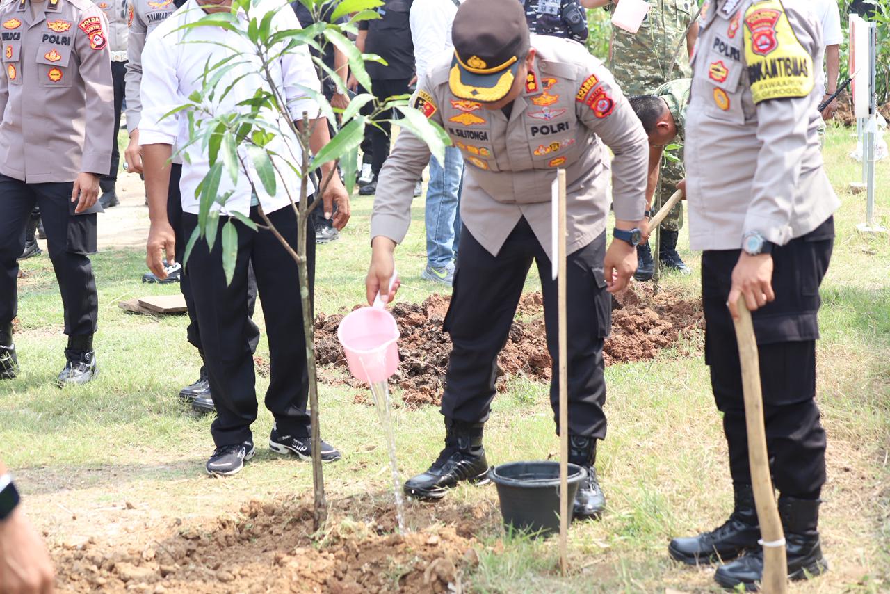 Kegiatan yang dimulai sejak pukul 09.00 WIB tersebut berlangsung penuh semangat kebersamaan. Kapolres Cilegon AKBP Dr. Martua Raja Taripar Laut Silitonga turut hadir mendampingi Kapolda Banten Irjen Pol Hengki dalam rangkaian kegiatan, sekaligus mengikuti langsung proses penanaman pohon bersama para tamu undangan.